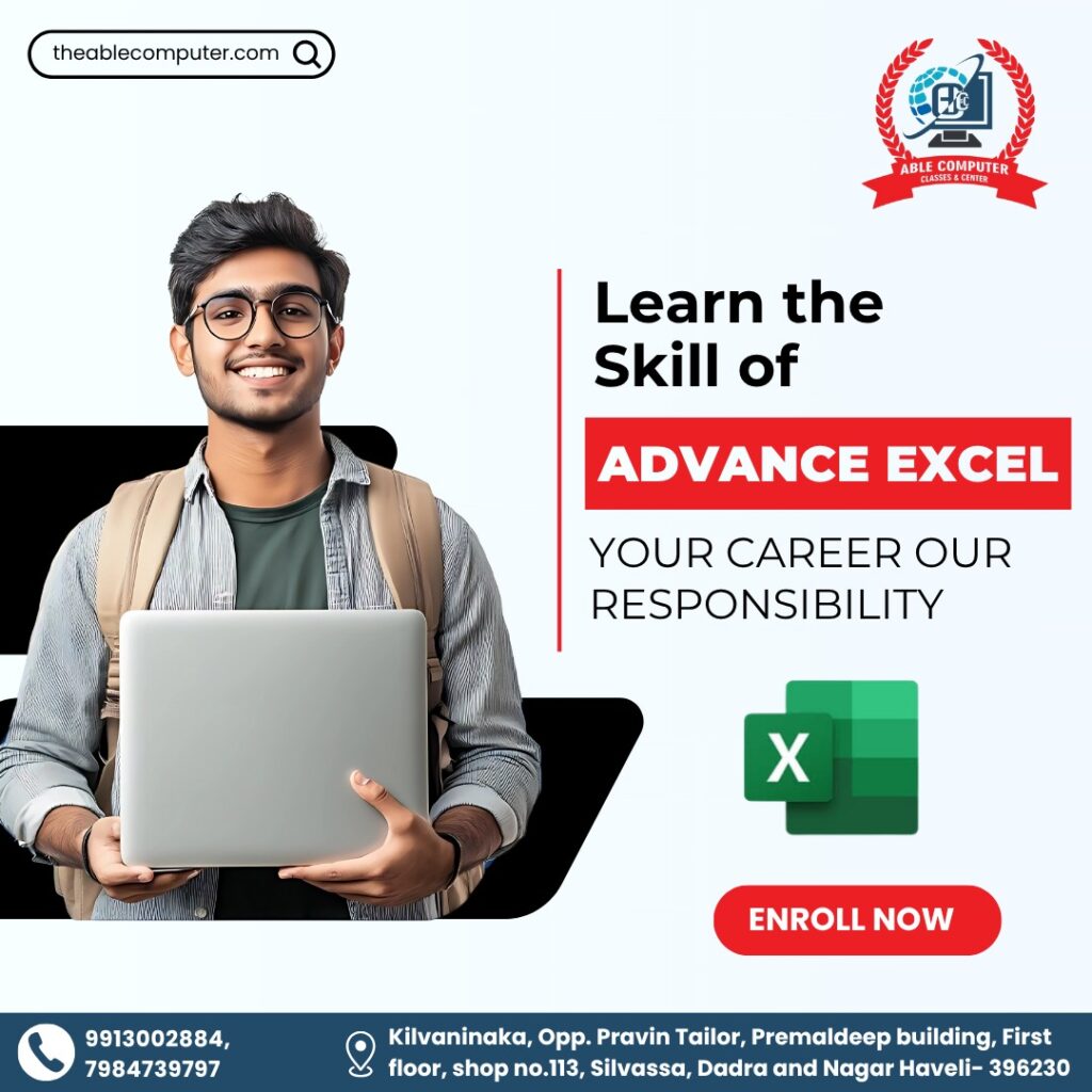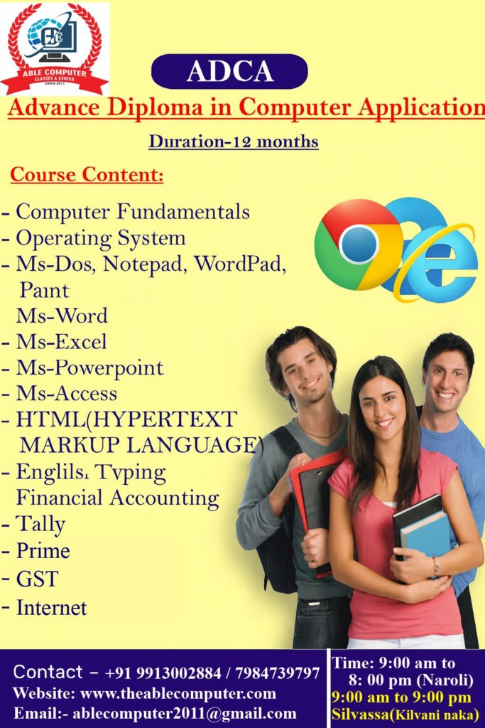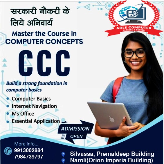 Established in 2011, ABLE Computer Classes and Center is a trusted and government-recognized institute in Silvassa, Dadra & Nagar Haveli, dedicated to transforming students into confident computer professionals. With over 14 years of excellence, we specialize in delivering practical, career-focused computer education for students, job seekers, and professionals.
